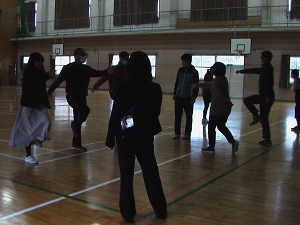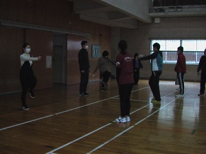 体力向上をめざし、運動が好きな子を育てようと、日々先生方は研修をしています。今日は、ペアでの運動を体育担当から紹介してもらい実践してみました。暗い体育館の中でしたが、楽しく運動できました。授業にも取り入れ、子ども達にも楽しんでほしいです。