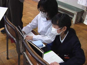 昨日お昼休みに、図書室・多目的ホールにて「家族に感謝のしおり作りの会」を行いました。
