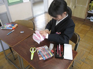昨日お昼休みに、図書室・多目的ホールにて「家族に感謝のしおり作りの会」を行いました。