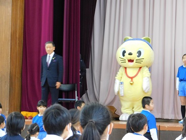 市長さんもご一緒に体操していただきましたが、市長さんの動きのキレの良さに子ども達も地域の皆さんもびっくり!間近で見ていた1年生は「市長さん すごい!」と感激していました。
