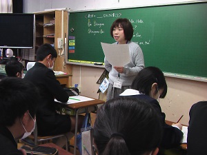 河北台中学校の品川英語教諭をお迎えしての出前授業。