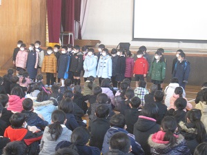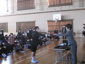 書き初めやなわとび大会などで頑張った子ども達が表彰されました。