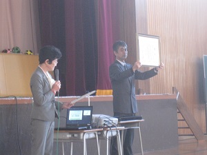 校長先生から、環境教育の取組で文部科学大臣賞の受賞式の報告がされました。