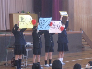 友達の良い行動を見つけ、みんなが笑顔になる楽しい学校にしていこうと呼びかけてくれました。