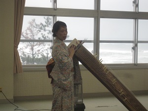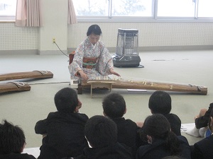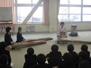 4年生が琴の音楽鑑賞、5年生が琴の体験をさせてもらいました。