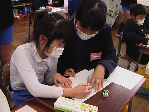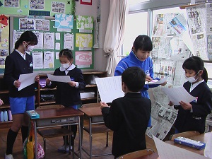 今日は、6年生が参観途中に、2年生の詩の音読の工夫を一緒に考えてくれていました。大好きな6年生に教えてもらって、2年生はますます楽しく学んでいました。