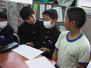 上級生の授業の様子を見に行きよい学習規律を学んだり、下級生の授業を見に行きがんばっている姿を褒めたりと、児童同士で刺激を与え合っています。