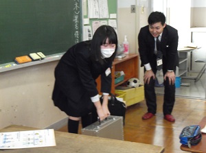また,スーツケースに入った1億円の重さを体験しました。予想よりもだいぶ重かったようです。