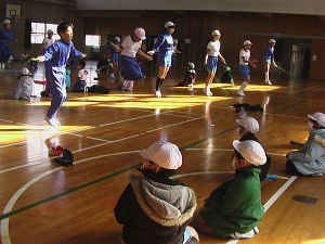 2分間で何回飛べるか、6年生が応援しながら数え、記録してくれました。