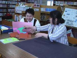 昨日お昼休みに、図書室・多目的ホールにて「家族に感謝のしおり作りの会」を行いました。