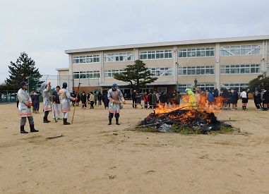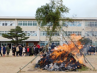 本日、本校にて左義長を行います。
