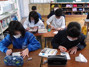 今日の長休みは、地域の方々やお世話になっているボランティアさんに全校児童で寒中見舞いを書きました。