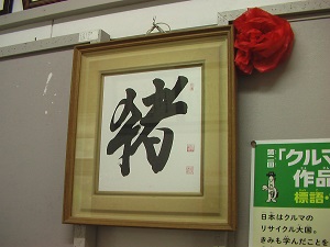 ②職員室前の色紙(かほく市余地の喜多先生より寄贈)