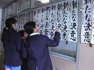 校内書き初め大会の審査が終わり、各教室前に展示してあります。子ども達も審査結果が気になり、休み時間にはたくさんの子が鑑賞していました。
