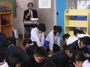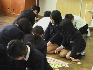 昨日に引き続き、市の愛護員である中嶋さんが、百人一首の指導に来てくださいました。中嶋さんの朗々たる声に、子ども達も百人一首の世界に引き込まれて、真剣に札を取っていました。かるた大会は、今月20日(日)です。本番めざして、がんばってね!