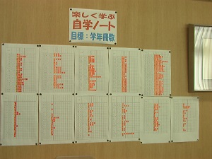 高学年にとっては、学期に2冊のペースで学習しなければならないので少し大変ですが、みんながんばっています。1冊終了する毎に、校長室の名簿にシールを貼りにきます。どの子も、1冊やり遂げた達成感に、思わず笑みがこぼれます。