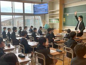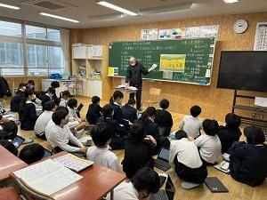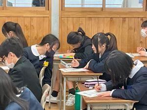 2025年2月3日 21時18分少しずつ卒業が近づいてきました。本日は河北台中学校の入学説明会でした。6年生は友達と声をかけ合いながら、中学校まで自分の力で登校するところからスタートしました。中学校に到着すると、まずは校長先生のお話を聞いて、美術・社会・数学・英語の4つの教科を体験しました。小学校より5分長い50分授業でしたが、子供たちは「思ったより短かった!」「集中していたらあっという間だった!」と話していました。もうすぐやってくる新たな環境に、胸膨らませる6年生のみなさんでした。