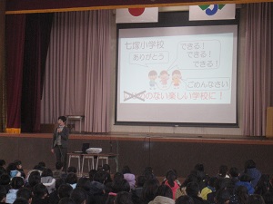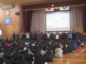 子ども達は、背筋をぴんと伸ばして、3人に目を向けながらしっかりと聞いていました。教室でも、3つのポイントを意識して、しっかり聞く力を付けていきましょう。