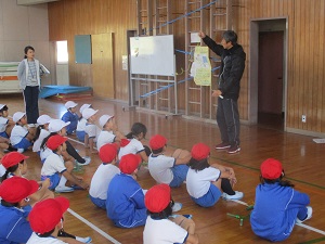 2018年12月4日 14時34分クラブパレットの西田体育指導員をお迎えして、2年生がなわとび練習を行いました。