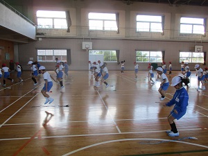 2年生の課題は、後ろ回し跳びです。リズムよく跳ぶためのコツを教えていただき、早速練習です。本番もたくさん跳べるように、がんばってね。