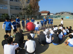 この日は、体育委員会との遊びの日。遊び券をゲットした児童は、体育委員と一緒に、大玉を使って思いっきり遊びを楽しんでいました。