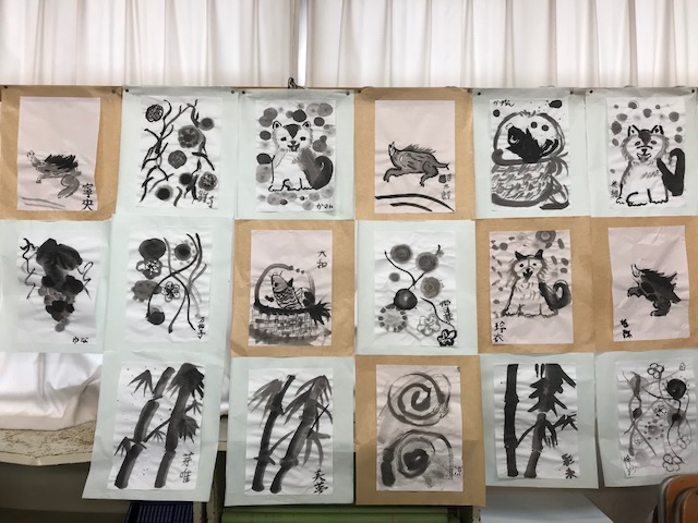 2018年11月30日 08時45分28日に子ども達が体験した水墨画を展示しました。