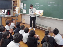 先週15日の朝読書時、全クラスで、担任以外の先生が本の読み聞かせを行いました。