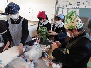 家庭室からいいにおいが…6年生が調理実習を行いました。