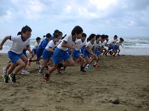 4年生、スタートで走りやすい位置をとっています。全力の走りを見せてくれました。