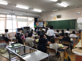 給食時間に3年生の加納先生と高澤先生と司書の澤野先生で、絵本の読み聞かせを行いました。