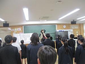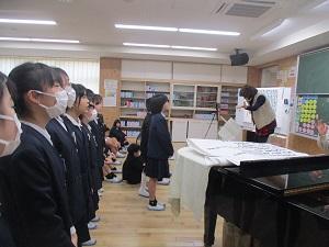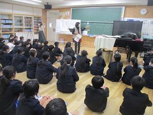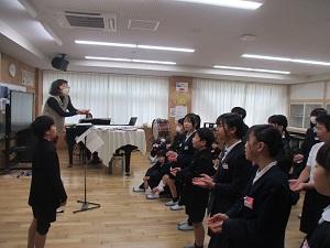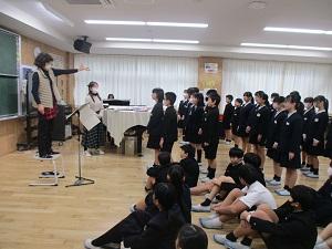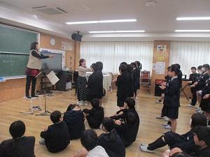 今日の2限目は、6年生の卒業式の合唱練習に、以前本校で音楽科を担当していらした川﨑先生に来ていただきました。川崎先生の情熱あふれるご指導に、6年生の声がどんどん変わってきました。表情や目の開け方、口の開け方、息を吸うタイミング、そしてジェスチャーを交えながらの声の出し方など、長年のご経験で培ったご指導で、子供たちもぐんぐん引き付けられていきました。先生には、2月にもう一度来ていただくことになっています。子供たち共々楽しみにしております。川﨑先生、本当にありがとうございました。今後とも宜しくお願い致します。
