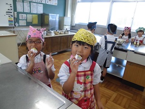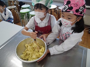 1年生が収穫したサツマイモを使って、スイートポテトを作りました。