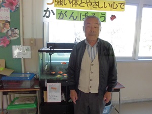 遠塚の学校安全ボランティアの方が、らんちゅうを4匹寄贈してくださいました。