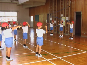 体育館で、子ども達の元気な体操の声が聞こえます。