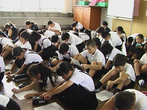 昨日お昼休みに、図書室・多目的ホールにて「家族に感謝のしおり作りの会」を行いました。