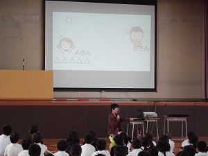 3階に行くと、5年生が4日(木)に行われる就学時健診の打合会を行っていました。