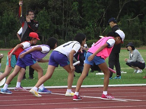 ピンクのゼッケンを付けての最後の学校対抗リレーでは、見事1位!