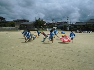 舞い上がる旗、迫力のある声、躍動する子どもたちの姿を