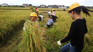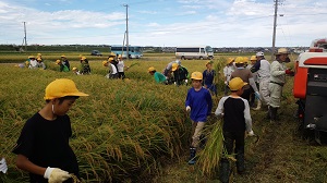 台風の影響もあり、とても暑い中でしたが、事前にしっかりと説明を聞き、安全に稲刈りをすることができました。