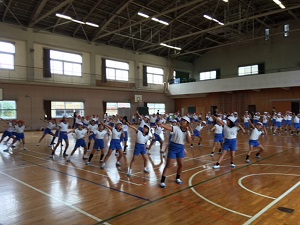 あいにくの雨でしたが、4限目に全体練習を体育館で行いました。