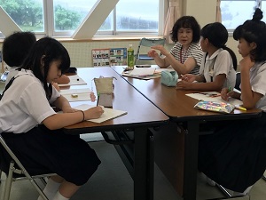最後に百科事典の早引きを、班対抗で行いました。楽しみながら取り組んでいました!百科事典マスターになってほしいものです。昨日、西田幾多郎記念哲学館の中嶋さんと井上さんが来校し、5年生対象に哲学対話の授業をして下さいました。
