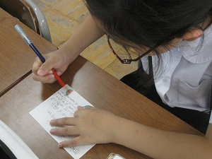 昨日お昼休みに、図書室・多目的ホールにて「家族に感謝のしおり作りの会」を行いました。