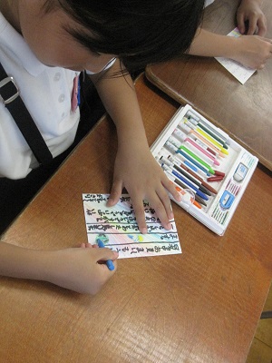 どの子たちも、思い思いに気持ちを込めてしおりを作っていましたね。お家の方に渡せましたか。