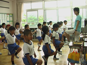 1年生:片足立ち…先生より長く続くかな?