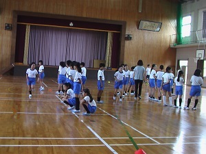 4~6年生は体育館でスポチャレの40メートルに各クラスで取り組みました。