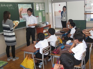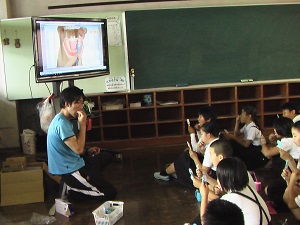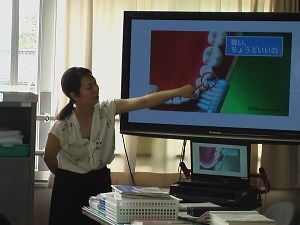 各学級では、養護教諭による歯磨き指導を行いました。