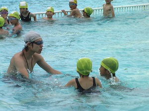 今日は、クラブパレットの西田先生が水泳指導に来てくださいました。5年生が、平泳ぎの手の掻き方を教えてもらいました。みんな、気持ちよさそうに学んでいました。