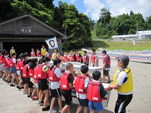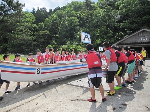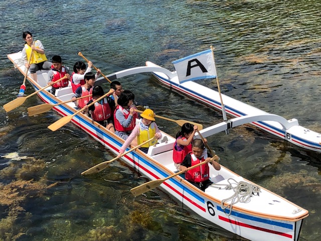 6年生が宿泊体験に行っています。海洋体験でカヌーをこぎました。