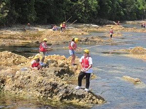 釣りを体験しました。上手な子は一人で何匹か釣っていました。