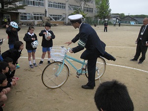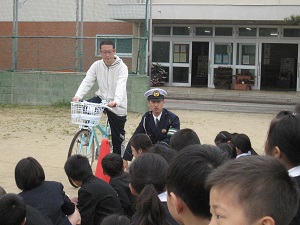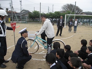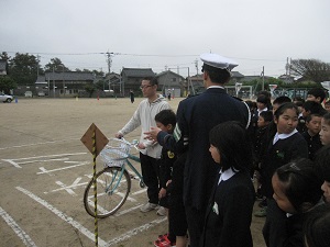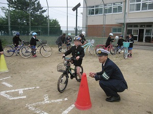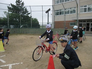 自転車は車の仲間であるため、左側通行であること、13歳以下は自転車で歩道を通ってよいが、歩行者優先であること、一時停止をする意味など、様々なことを確認しました。